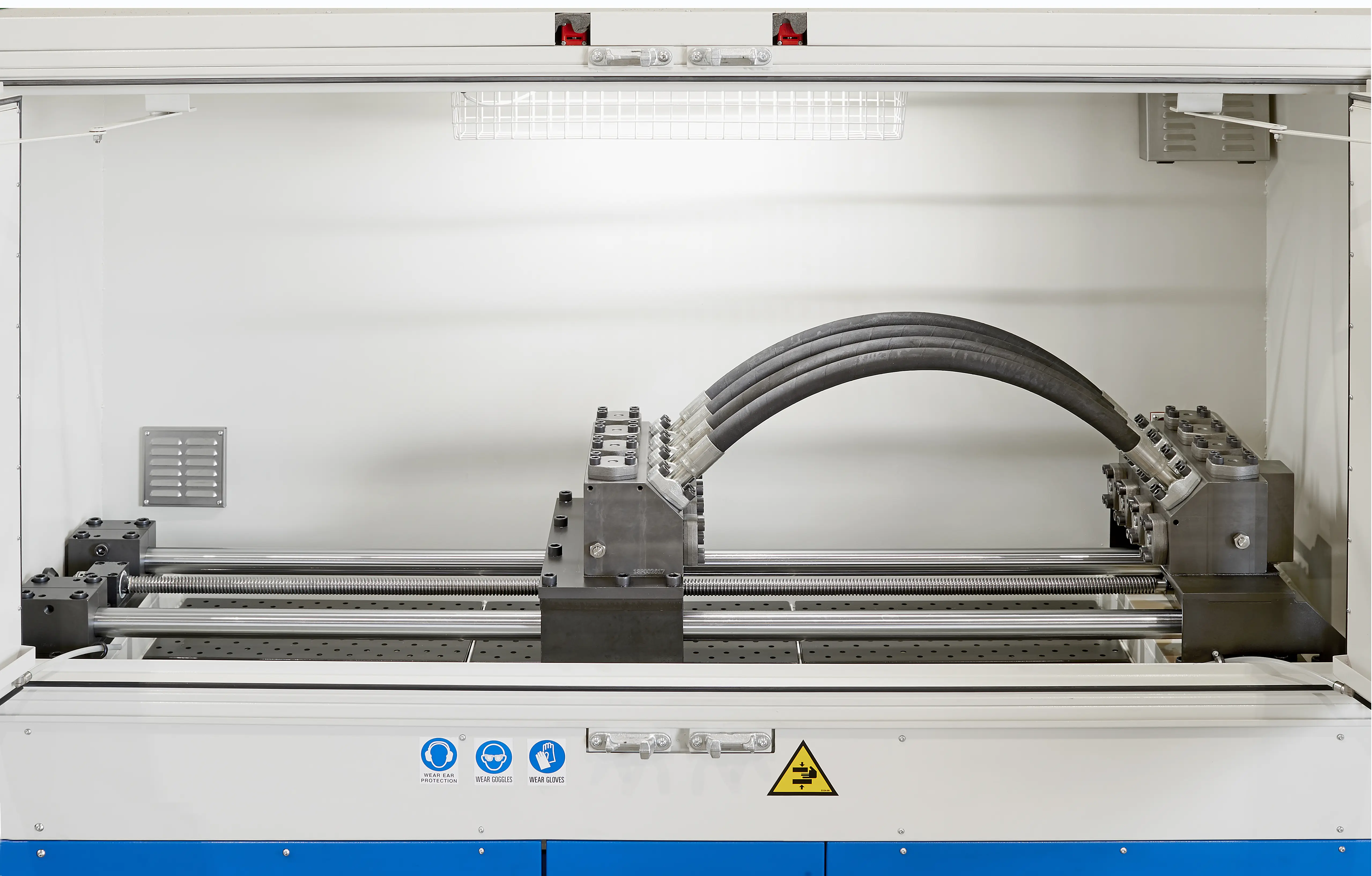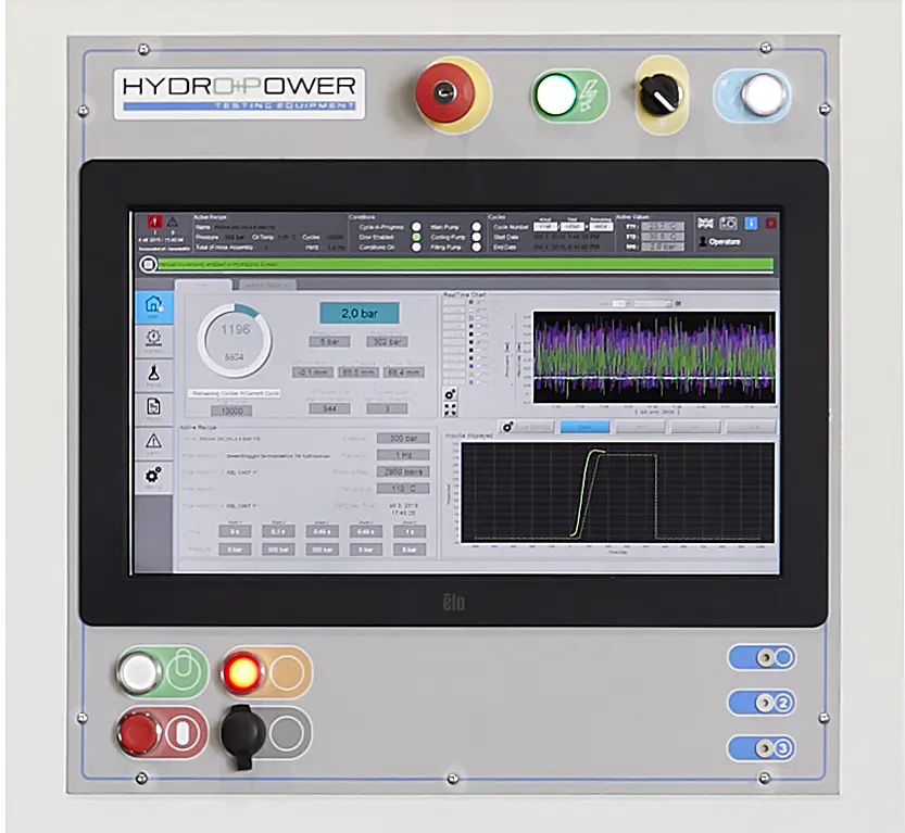 Il banco prova BCI1000ES esegue test impulsi di componenti oleodinamici quali tubazioni rigide o flessibili, raccordi, innesti rapidi, valvole in accordo alle specifiche SAE J343, ISO 6803, ISO 6605 e ISO 7241-2. DATI TECNICI • Onda di pressione secondo SAE J343, ISO 6803, ISO 6605 e ISO 7241-2. • Pressione massima di prova 1000 bar • Pressione minima di prova 80 bar • Cilindrata/impulso 230 cm3 • Frequenza massima di prova 1 Hz • Temperatura massima olio 150° C DISPOSITIVI DI SICUREZZA: • Interblocco elettrico all’esecuzione del test in caso di sportello aperto • Finestre per la visualizzazione degli elementi sotto test • Completo di vetri e reti metalliche di protezione • Fungo di emergenza • Interruzione automatica in caso di qualsiasi anomalia di funzionamento del banco ALIMENTAZIONI: • Tensione standard di 400 V – 50 Hz – trifase (a richiesta voltaggi speciali) OPTIONAL: • Assistenza remota online. • Sistema aspirazione fumi e disoleatore. • Pannello di controllo mobile. • Massello centrale aggiuntivo. • Rilevamento nebbia d'olio in camera di prova.