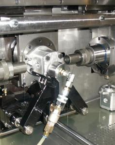 Il banco prova TSGP 100 NN è destinato al rodaggio e collaudo finale di produzione per pompe oleodinamiche singole ad ingranaggi o similari, destre, sinistre e reversibili - con la stessa installazione. La macchina effettua il collaudo del componente e verifica che risponda ai requisiti di accettabilità di prodotto finito. Esegue inoltre cicli di collaudo personalizzabili con rampe combinate di pressione e velocità, nei limiti delle prestazioni del banco. DATI TECNICI • KW 100 • BAR 300 • L/MIN 145 • RPM 2800