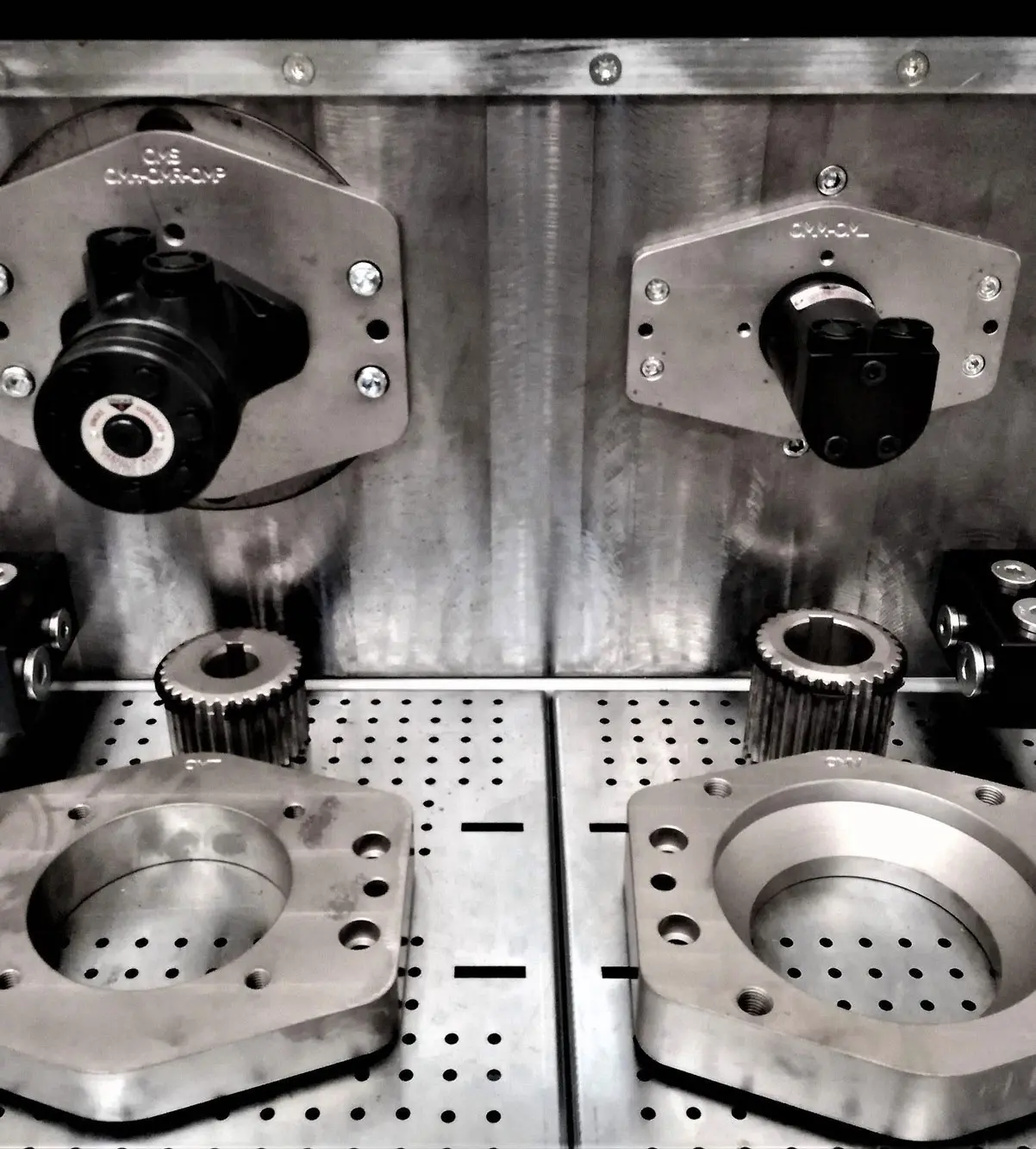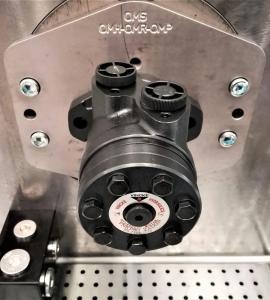 Il banco prova TSOM 37 NN è destinato al rodaggio e collaudo finale di produzione di motori orbitali in circuito chiuso. La macchina effettua il collaudo del componente e verifica che risponda ai requisiti di accettabilità di prodotto finito. Esegue inoltre cicli di collaudo personalizzabili con rampe combinate di pressione e velocità, nei limiti delle prestazioni del banco. Il banco è dimensionato per collaudare motori orbitali con portate fino a 56 l/min e pressioni fino a 350 bar, nei limiti della potenza installata di 37 kW del motore elettrico. DATI TECNICI • KW 37 • BAR 350 • L/MIN 56 • RPM 2800